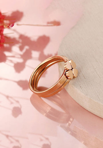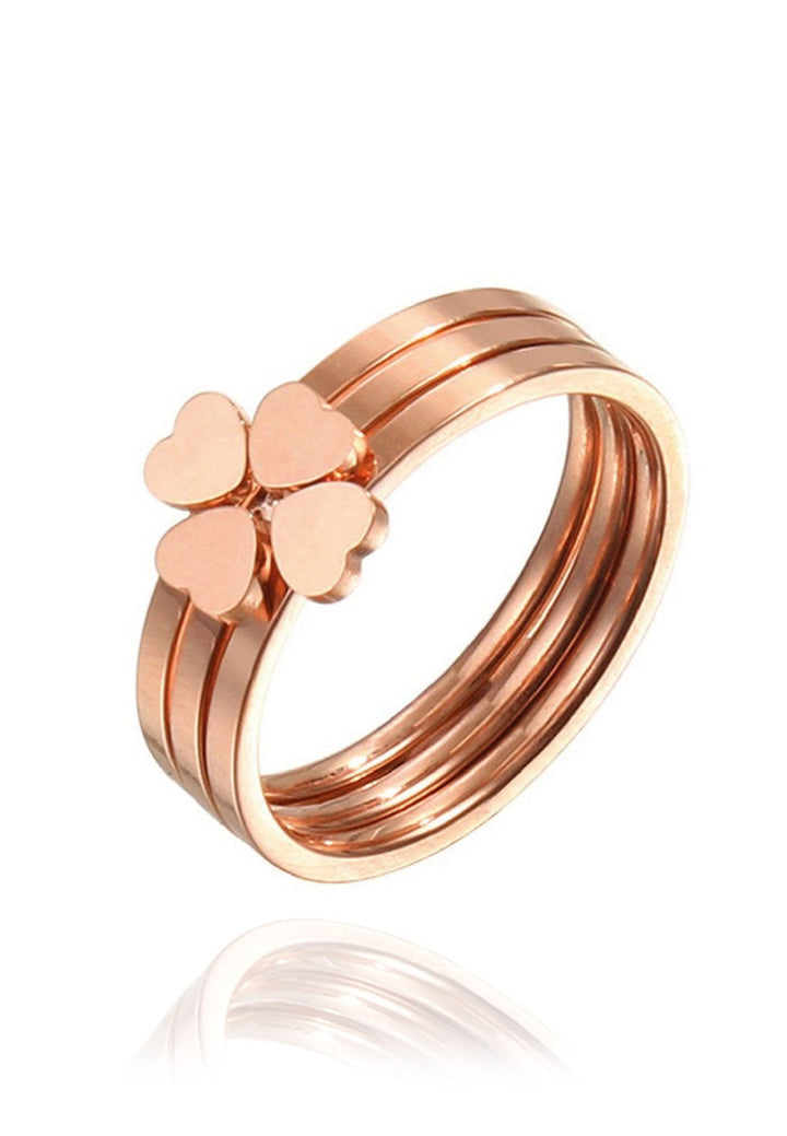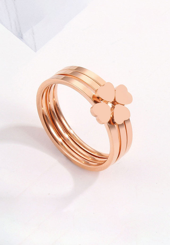 데스티니 클로버 하트 꽃잎 3피스 스택형 반지 (로즈 골드)