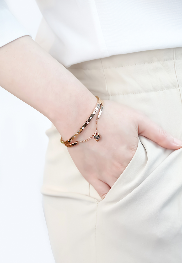 키이라 로마 숫자 디아스 하트 힌지드 팔찌